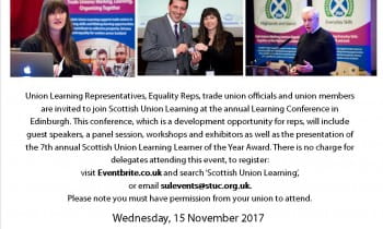 Register to attend here: https://www.eventbrite.co.uk/e/scottish-union-learning-conference-2017-tickets-37417059432?aff=es2